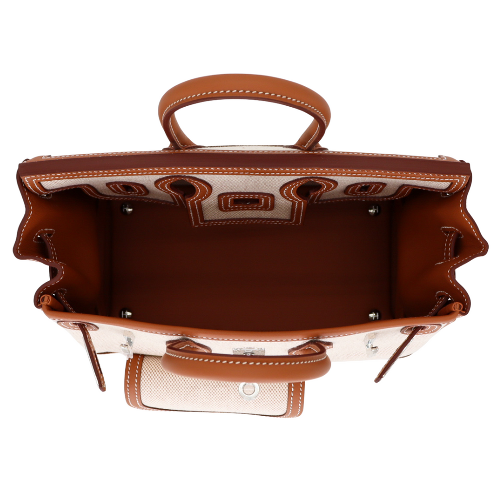 Hermès 25cm Birkin Cargo Ecru/Gold Canvas/Swift Leather Palladium Hardware