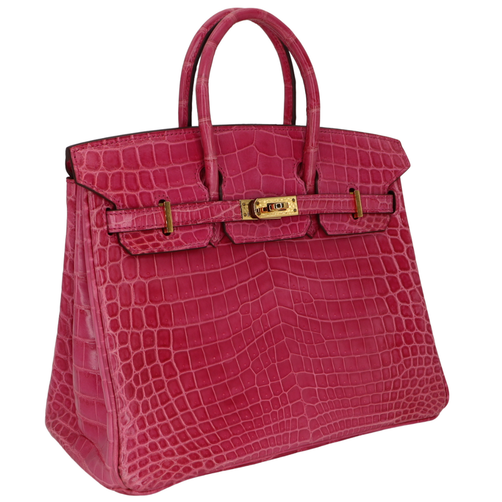 Hermès 25cm Birkin Rose Tyrien Shiny Niloticus Crocodile Gold Hardware
