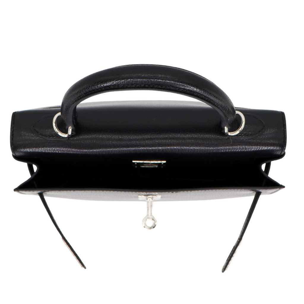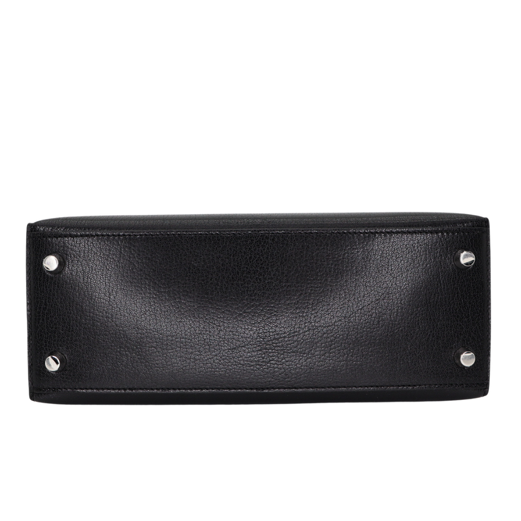 Hermès 25cm Kelly Sellier Black Chèvre Leather Palladium Hardware