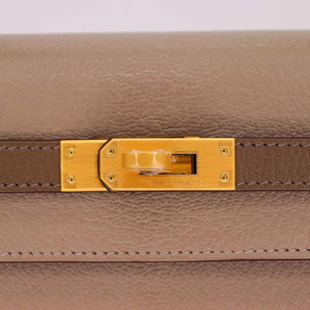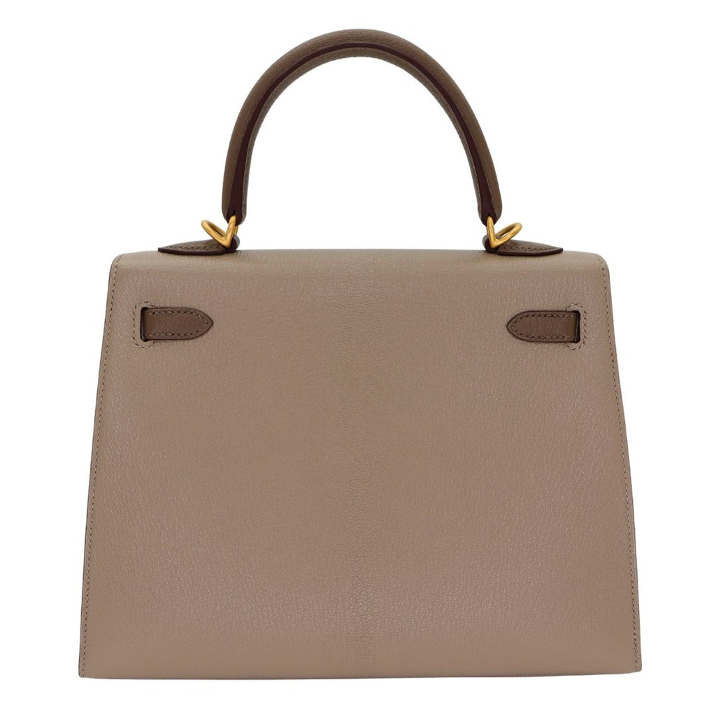 Hermès 25cm Kelly Sellier HSS Etoupe/ Gris Tourterelle Chevrè Leather Brushed Gold Hardware