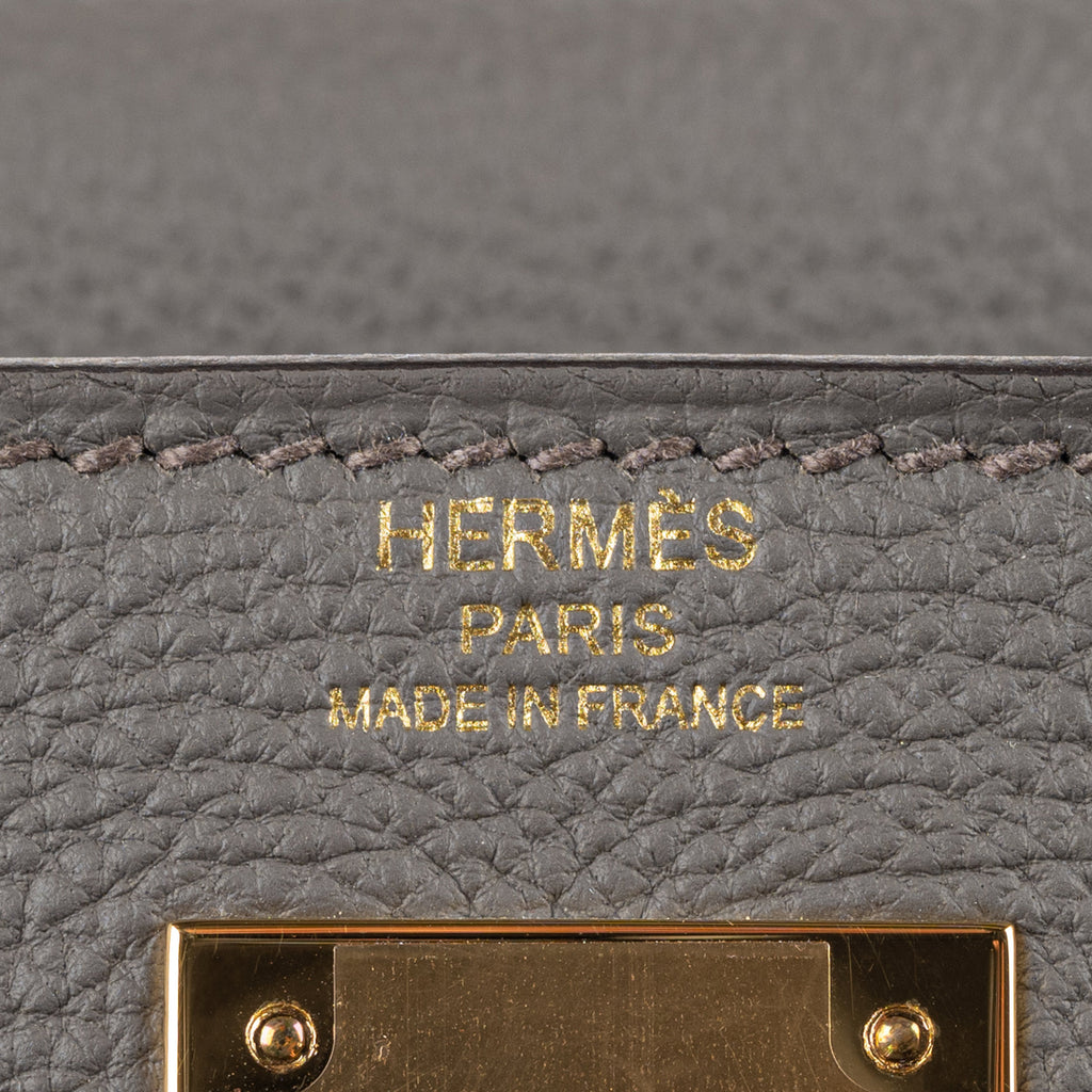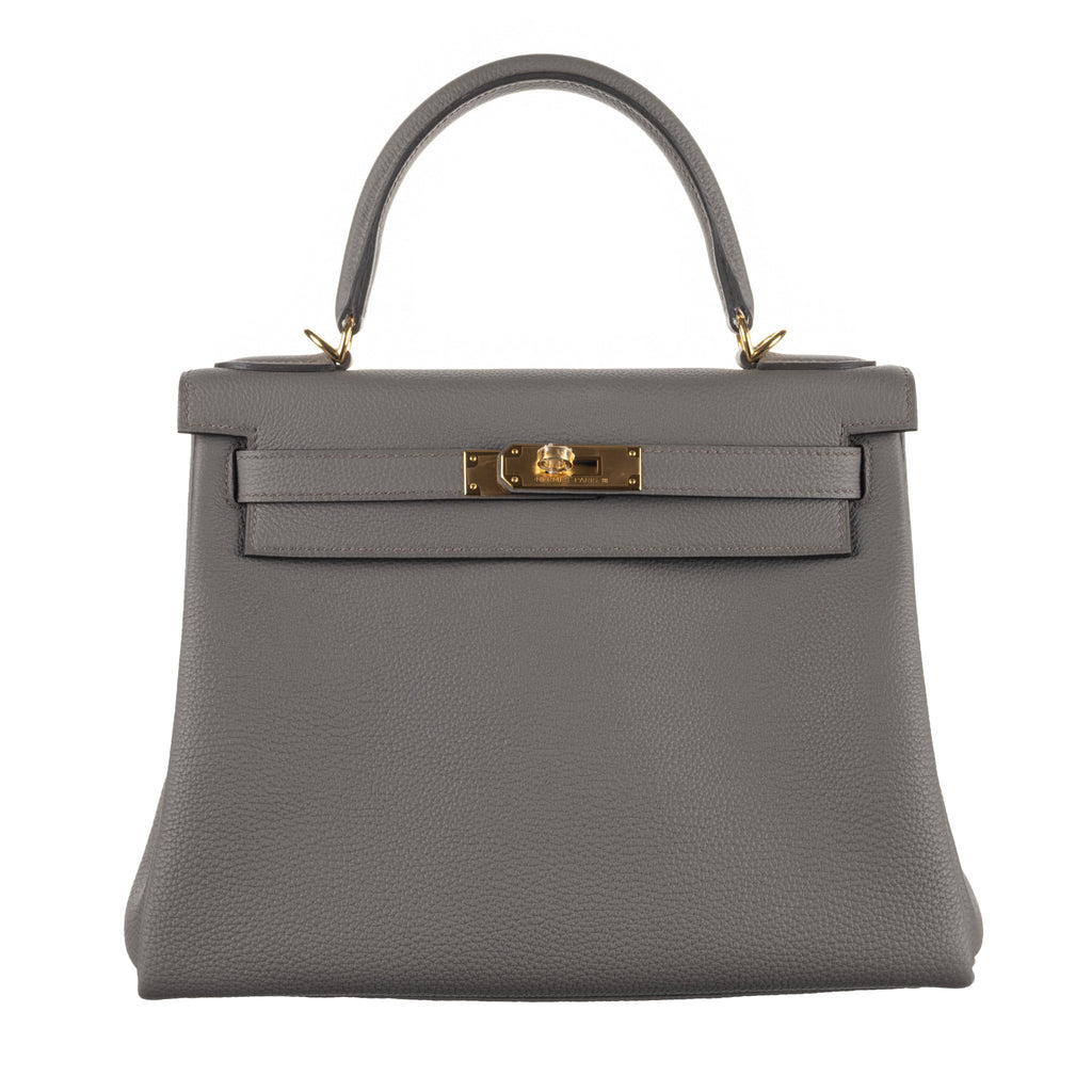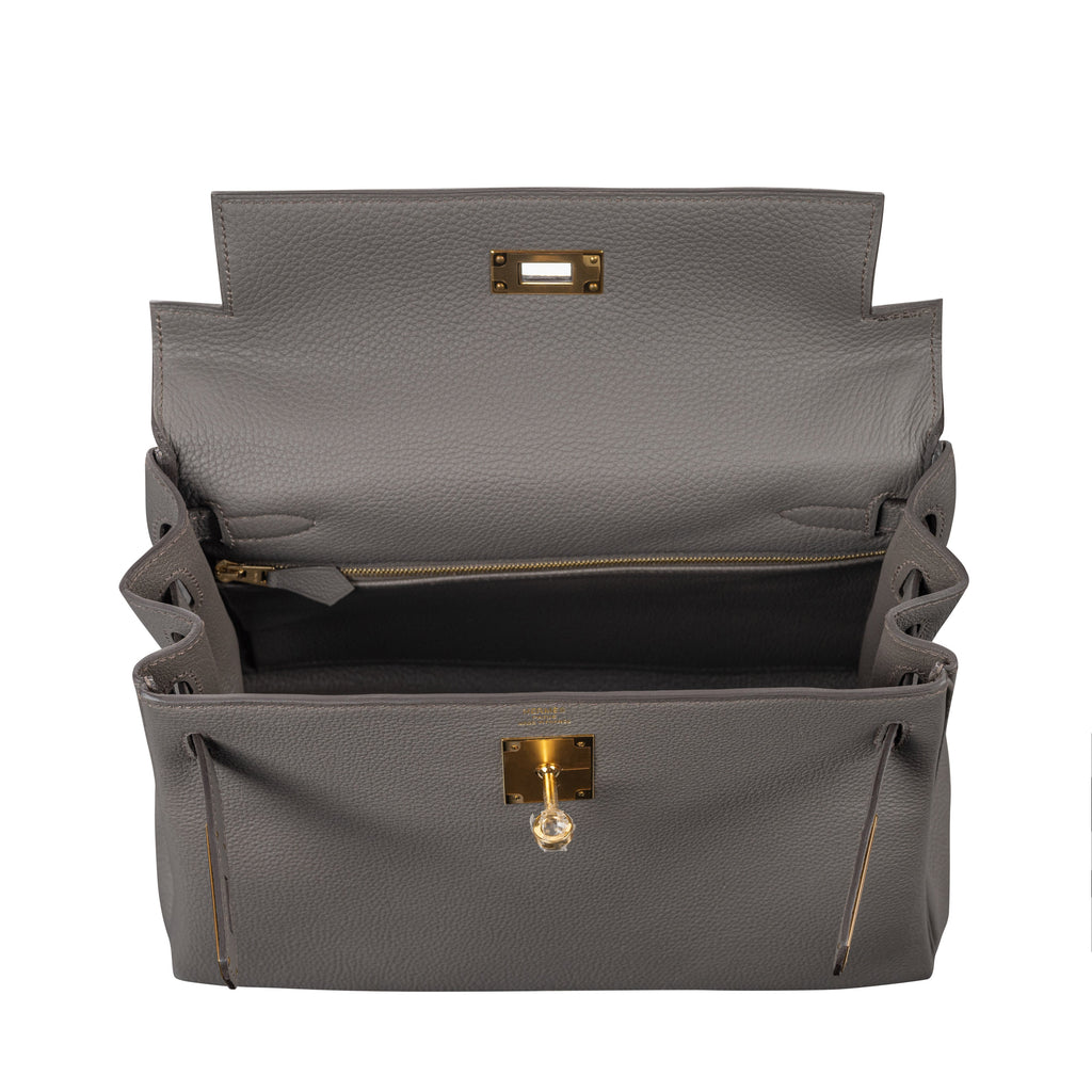 Hermès 28cm Kelly Retourne Gris Etain Togo Leather Gold Hardware