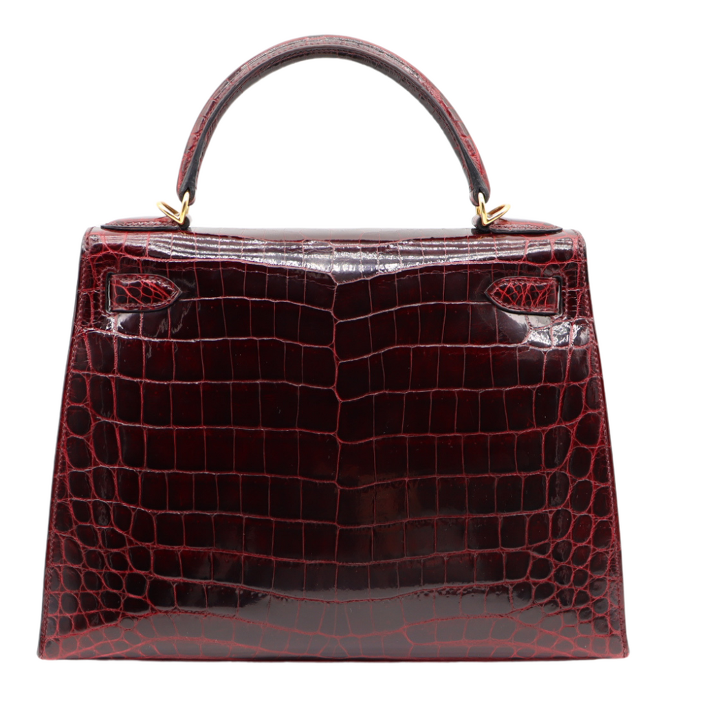 Hermès 28cm Kelly Sellier Bordeaux Shiny Niloticus Gold Hardware