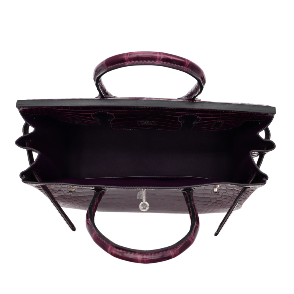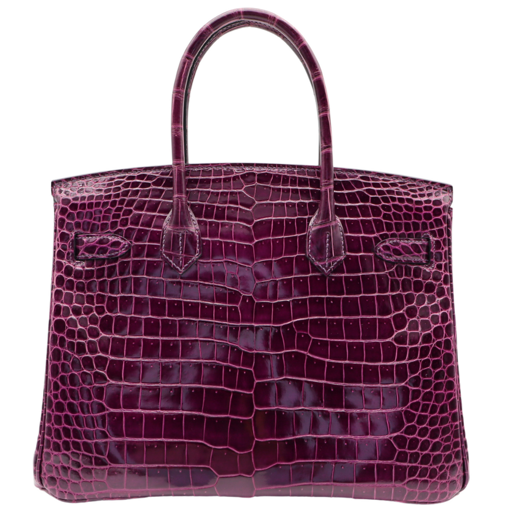 Hermès 30cm Birkin Amethyst Shiny Porosus Crocodile Palladium Hardware
