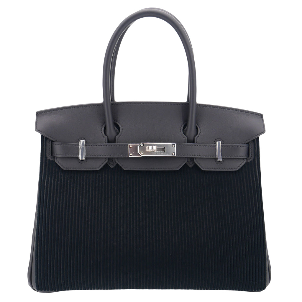 Hermès 30cm Birkin Black Cote a Cote Tuffetage Caban Swift Leather Palladium Hardware