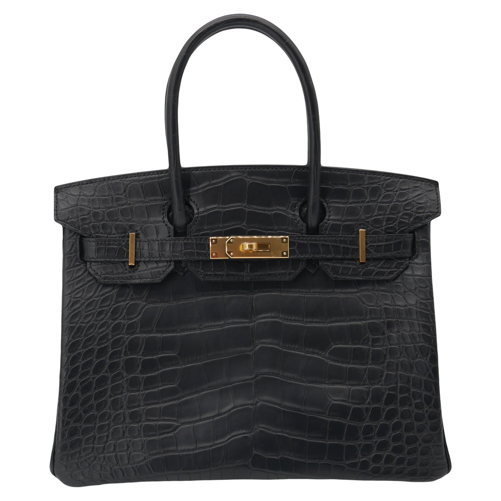 Hermès 30cm Birkin Black Matte Alligator Gold Hardware