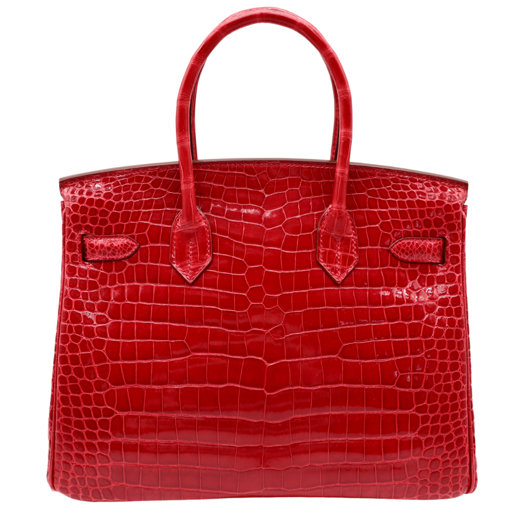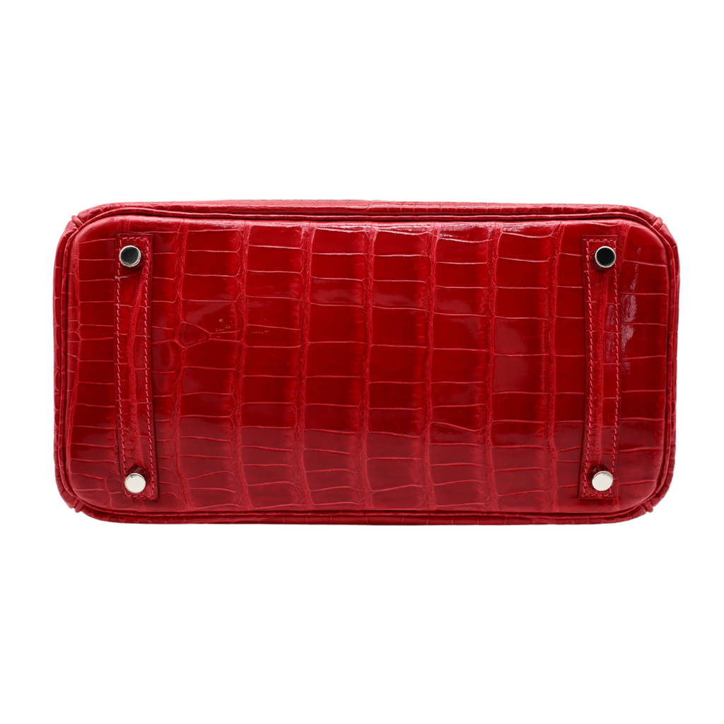 Hermès 30cm Birkin Braise Shiny Porosus Crocodile Palladium Hardware