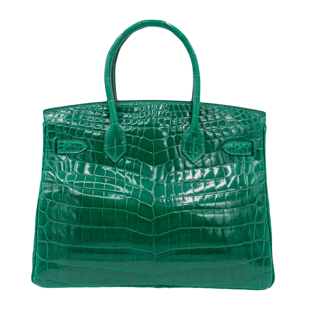 Hermès 30cm Birkin Emerald Shiny Niloticus Gold Hardware