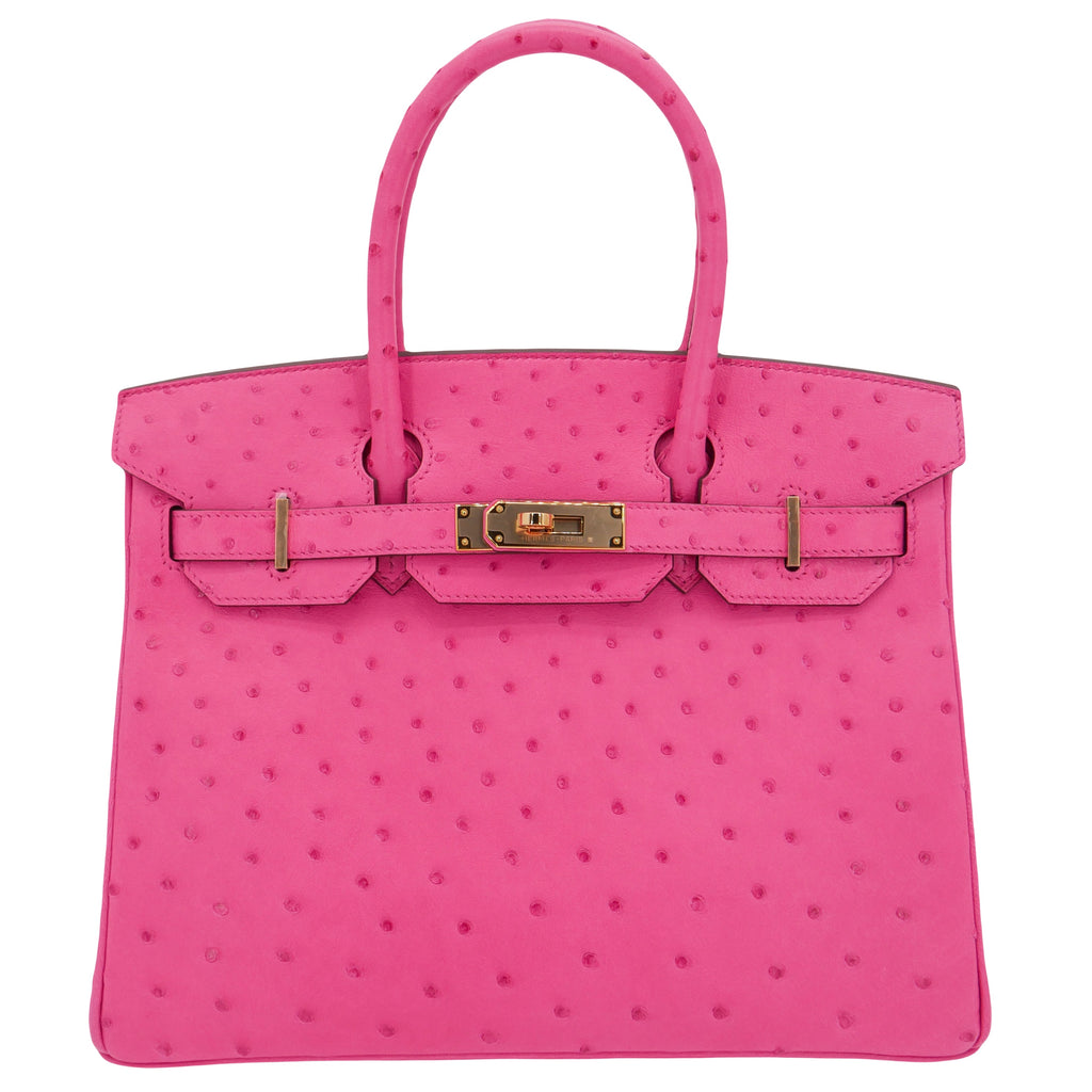 Hermès 30cm Birkin HSS Rose Tyrien/ Lime Ostrich Rose Gold Hardware