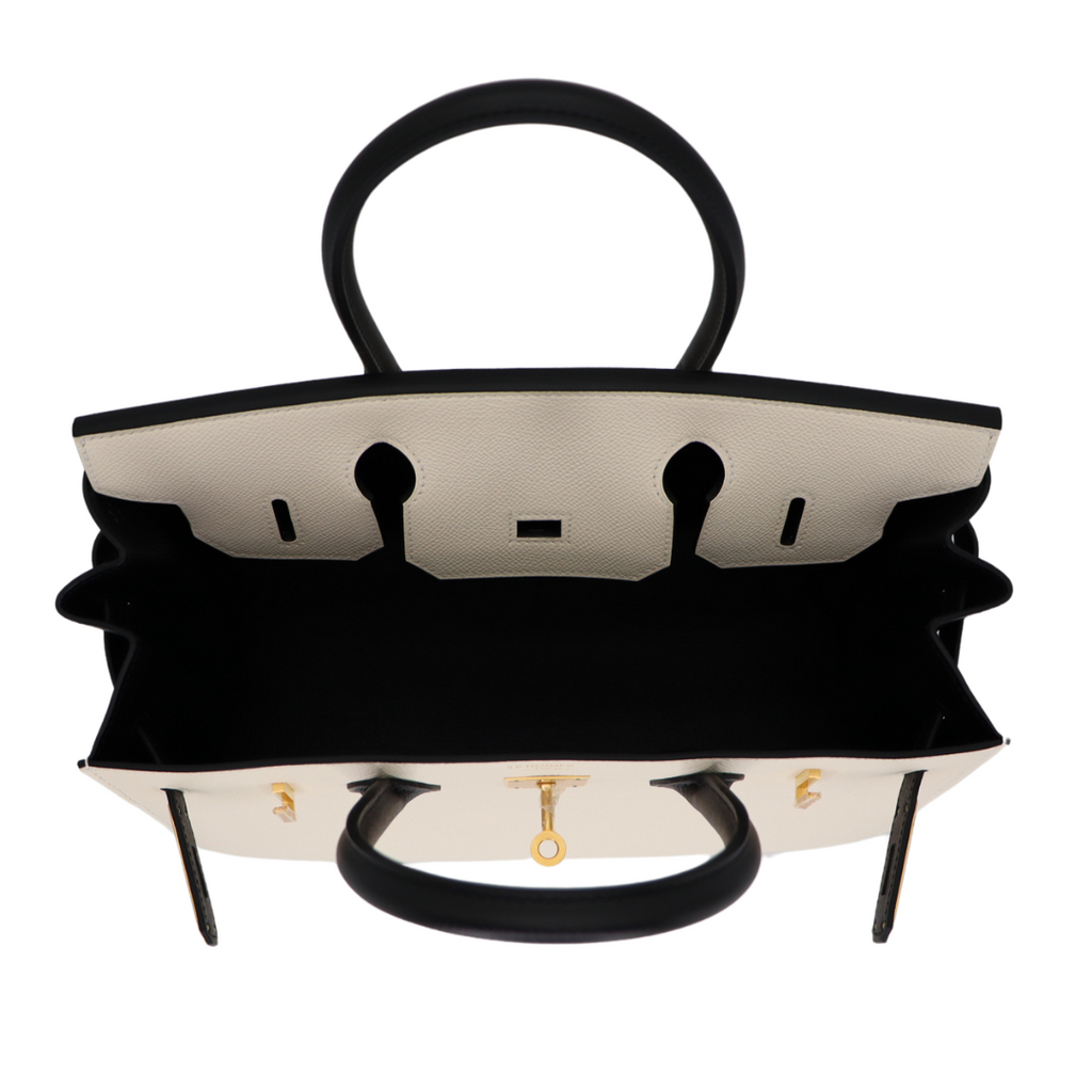 Hermès 30cm Birkin Sellier HSS Craie/Black Epsom Leather Brushed Gold Hardware