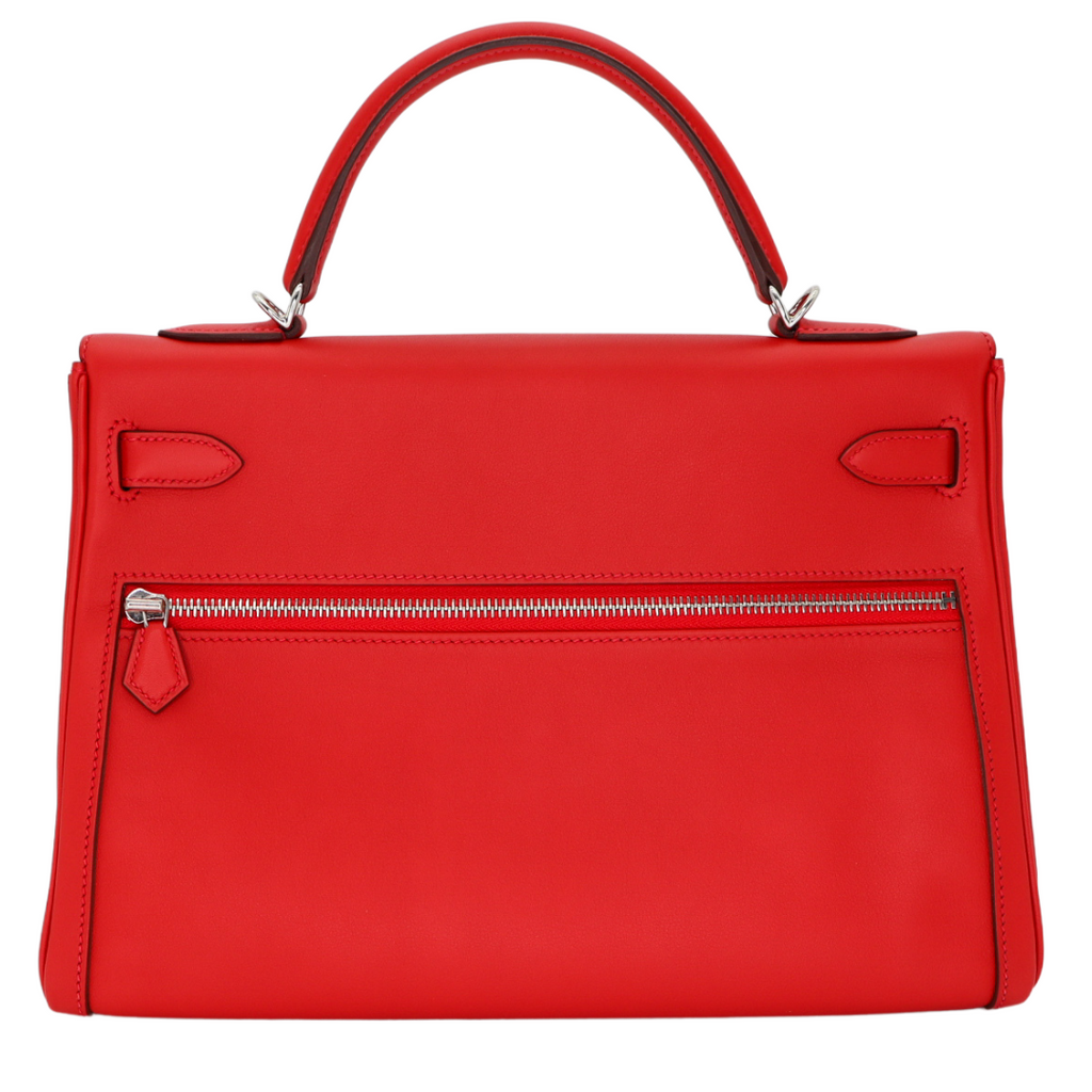 Hermès 32cm Kelly Lakis Retourne Vermillon Palladium Hardware