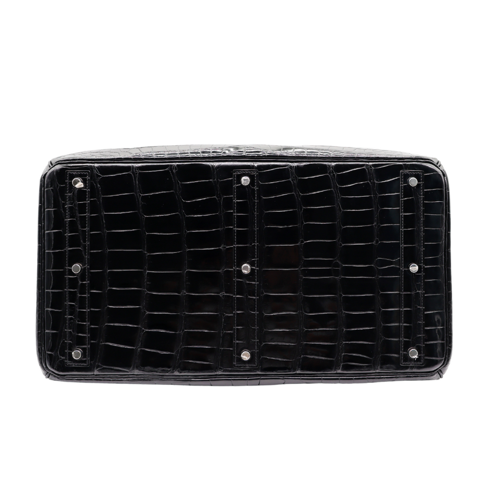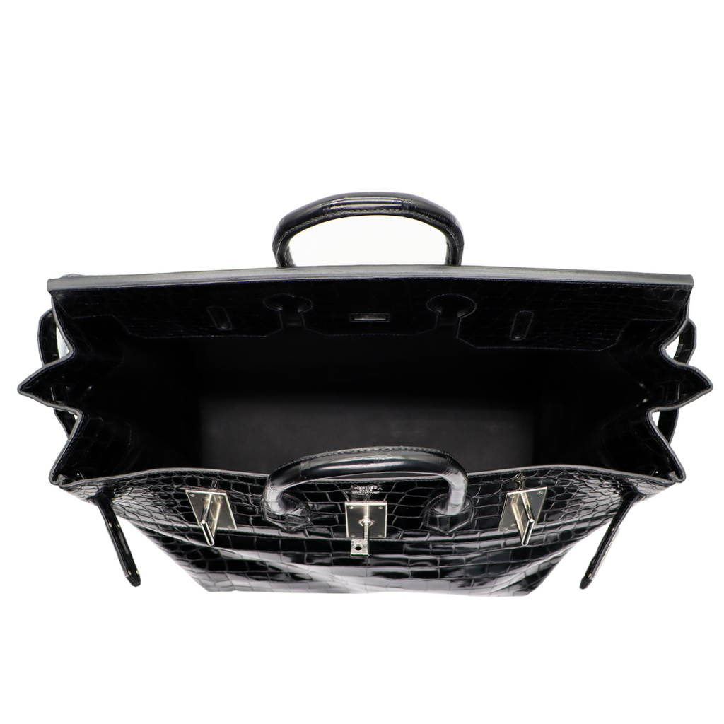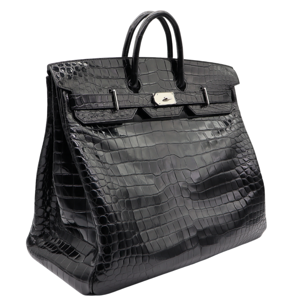 Hermès 50cm HAC Black Shiny Porosus Crocodile Palladium Hardware