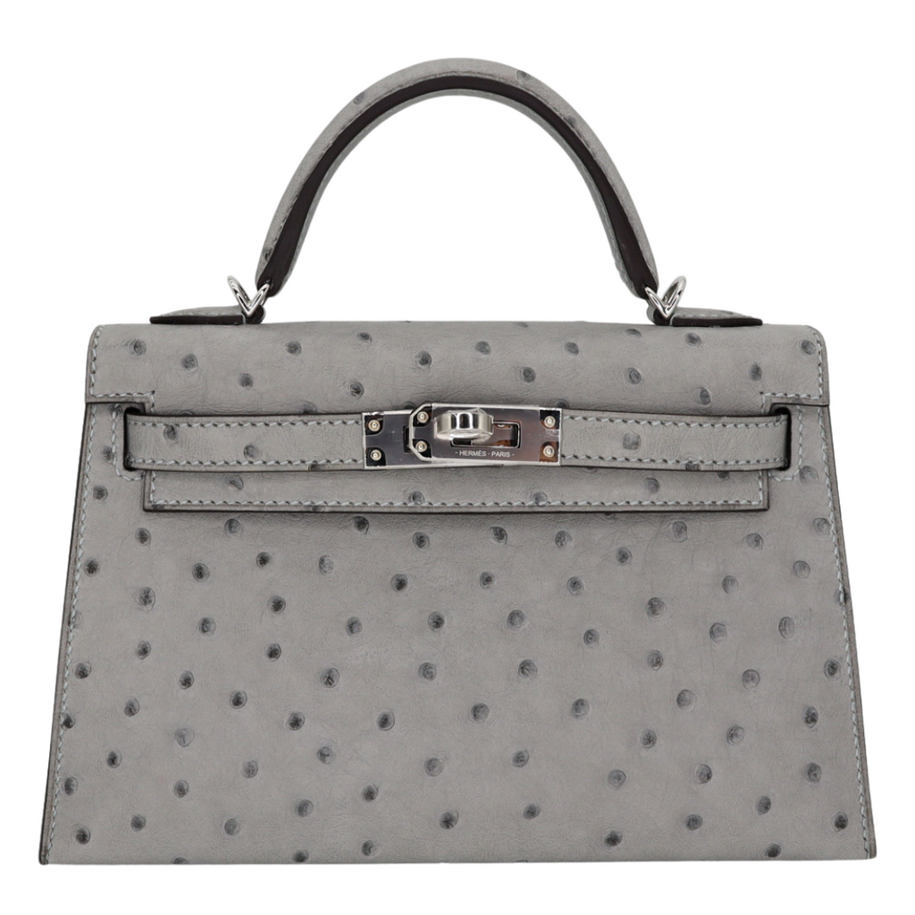 Hermès Kelly II Sellier Mini Bleu Glacier Ostrich Palladium Hardware