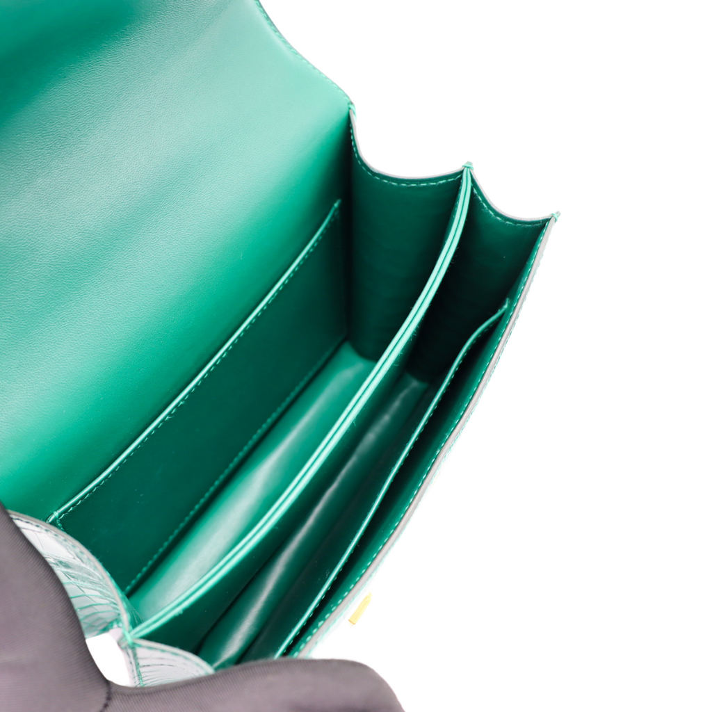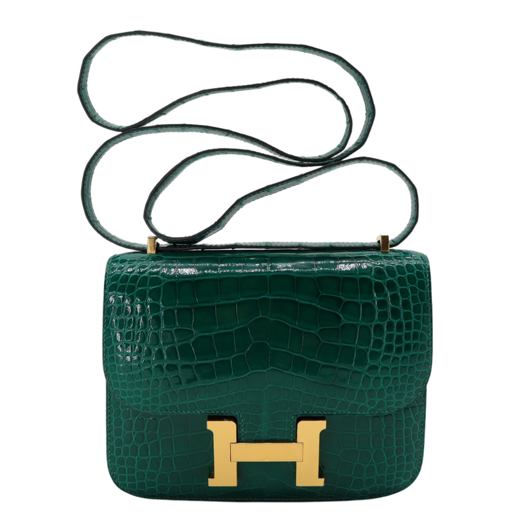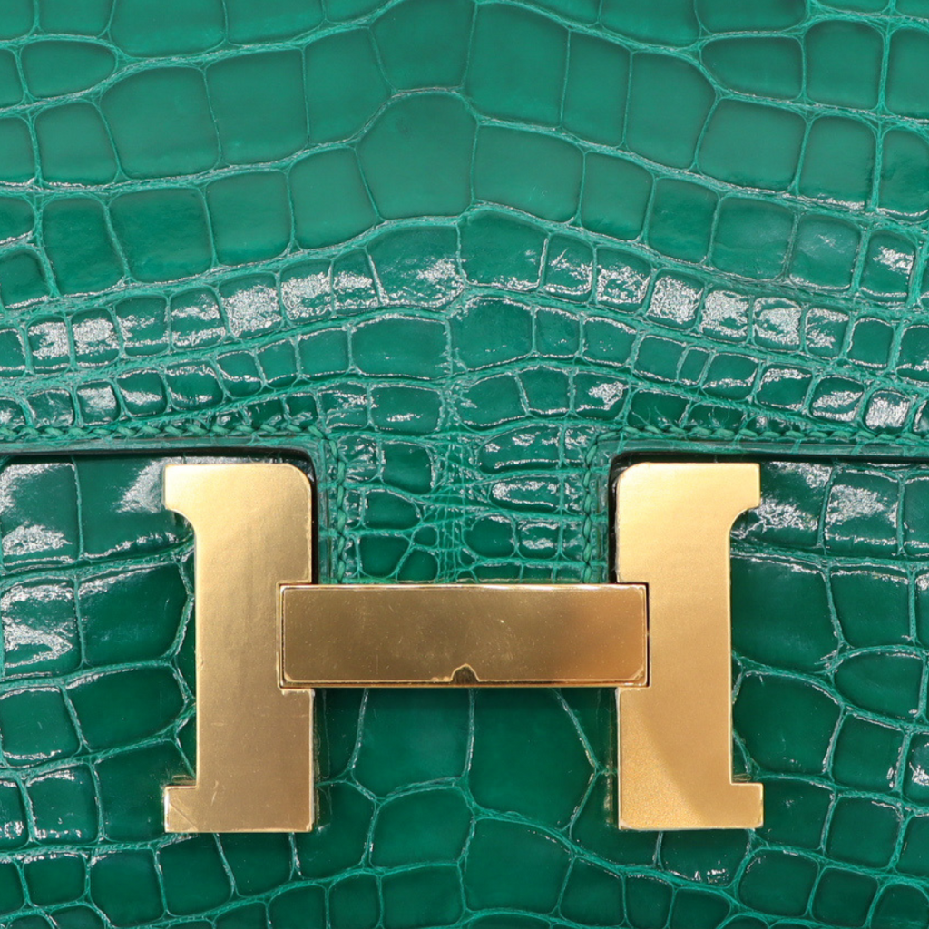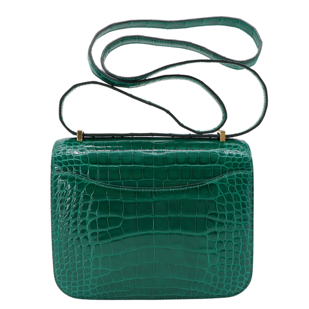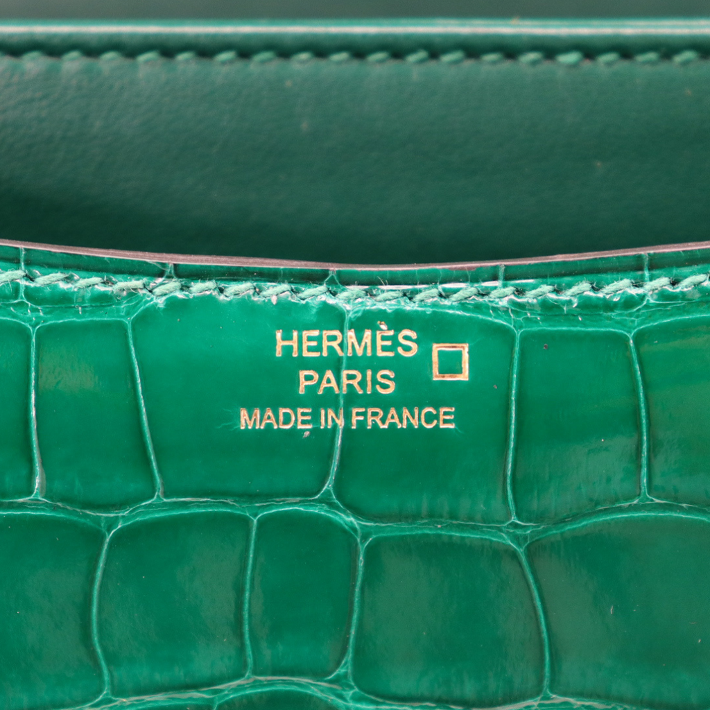 Hermès 18cm Constance Vert Emeraude Shiny Alligator Gold Hardware