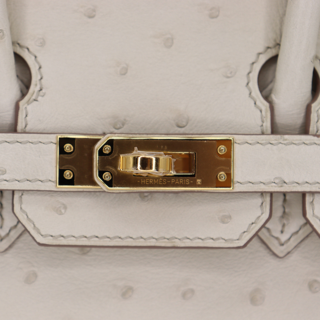 Hermès 25cm Birkin Beton Ostrich Gold Hardware