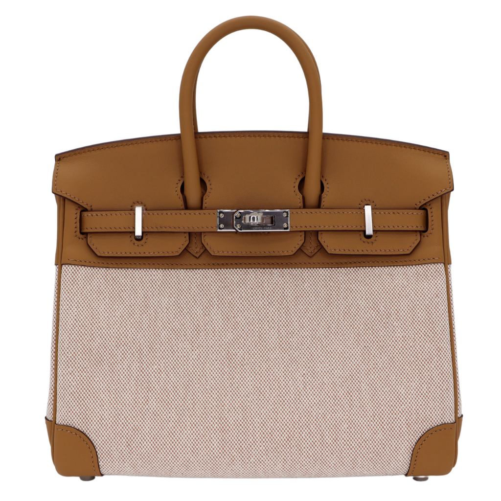 Hermès 25cm Birkin Biscuit Toile/Swift Leather Palladium Hardware