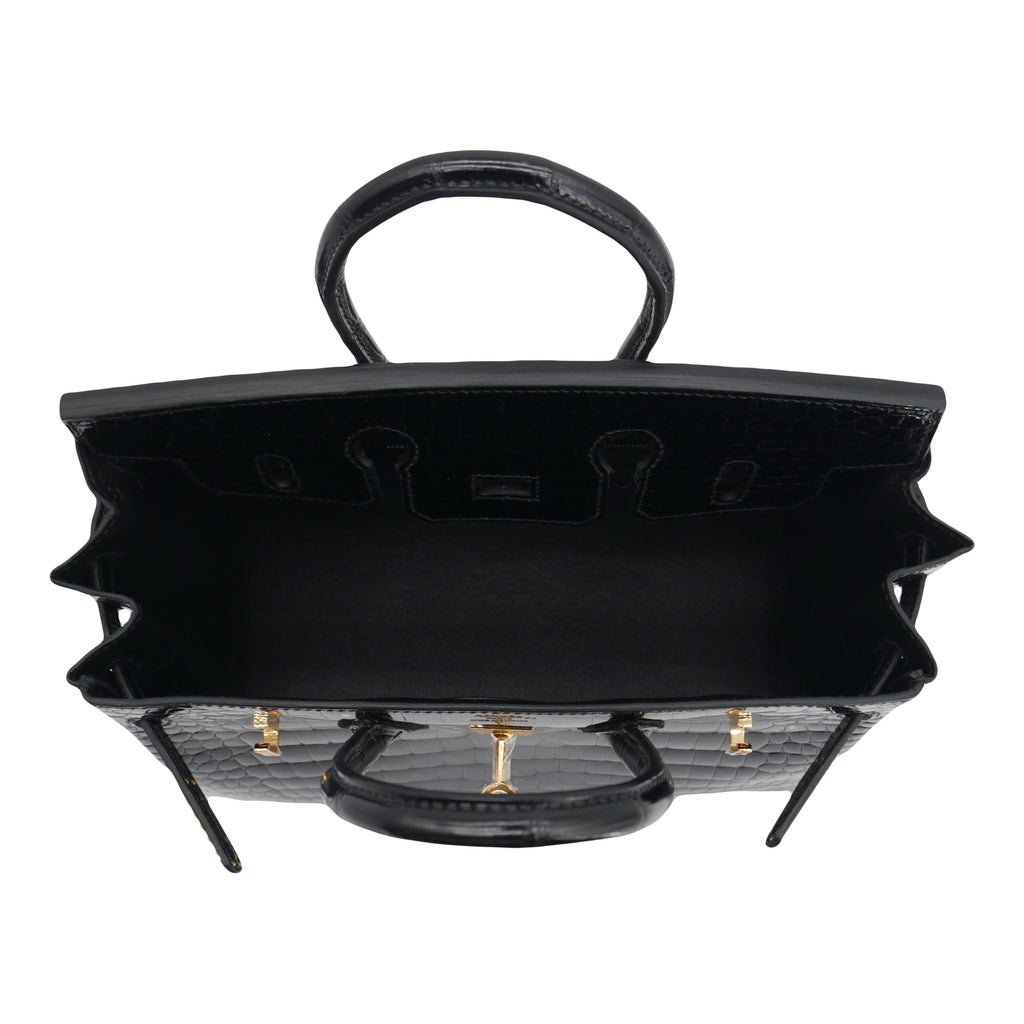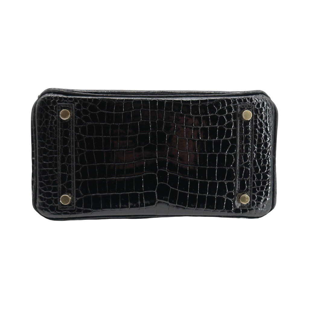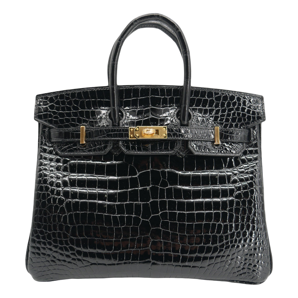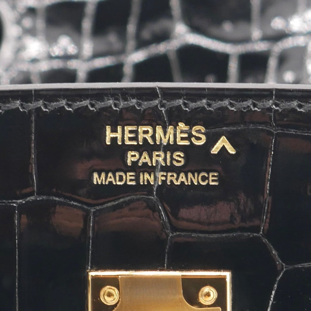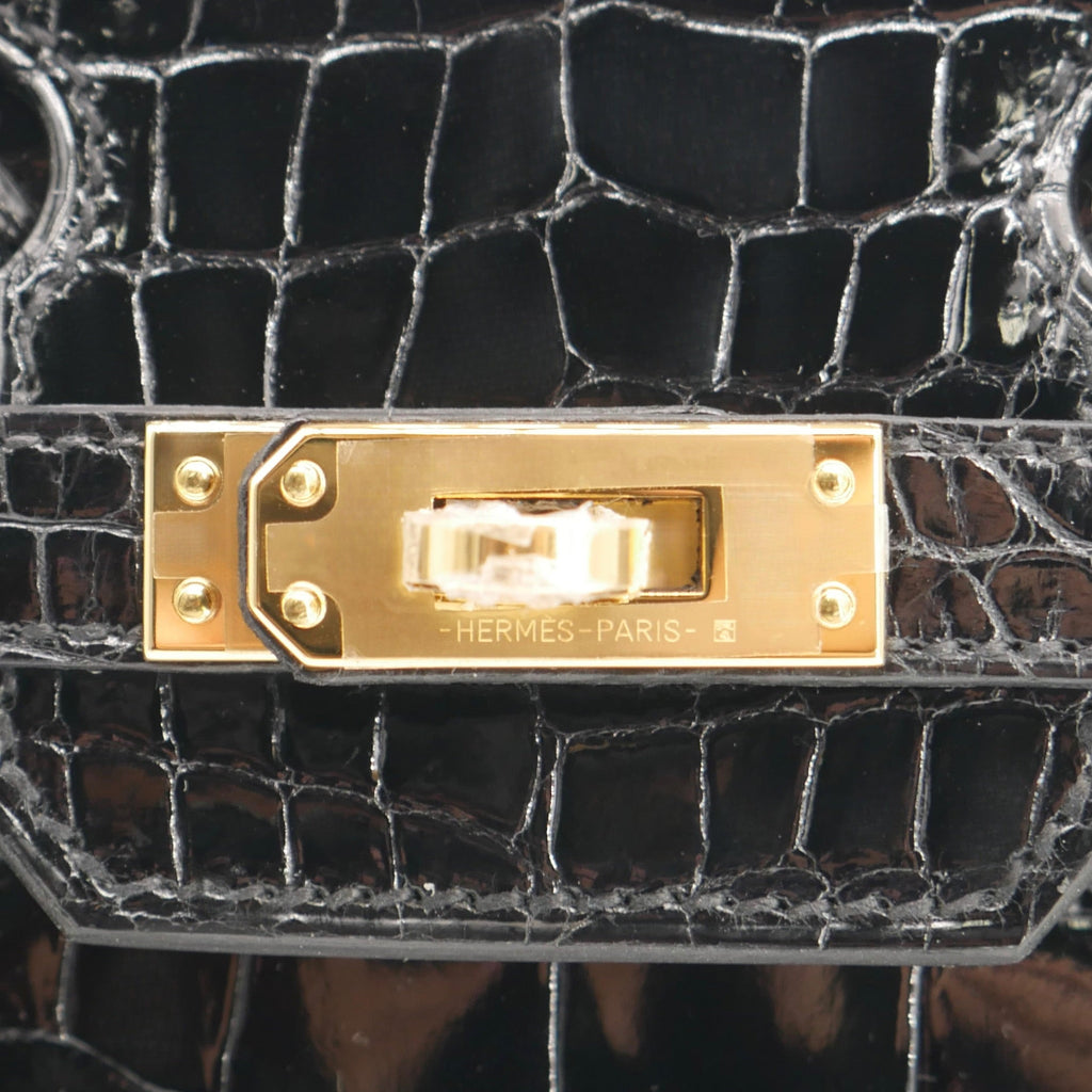 Hermès 25cm Birkin Black Shiny Porosus Crocodile Gold Hardware