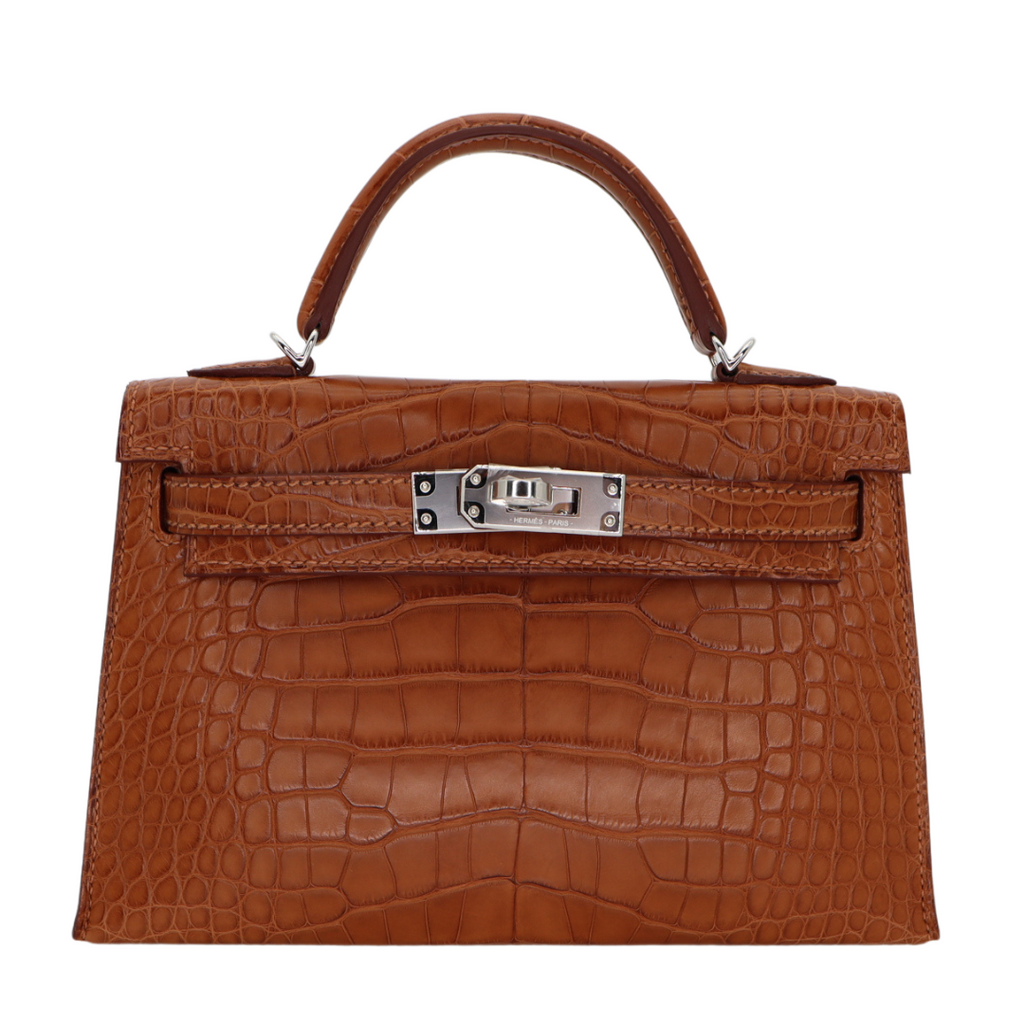 Hermès Kelly II Sellier Mini Gold Matte Alligator Palladium Hardware
