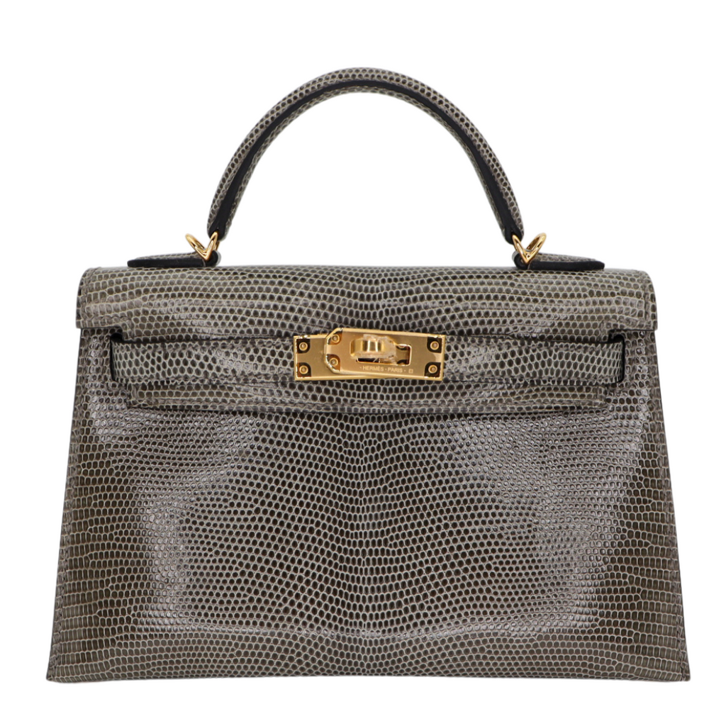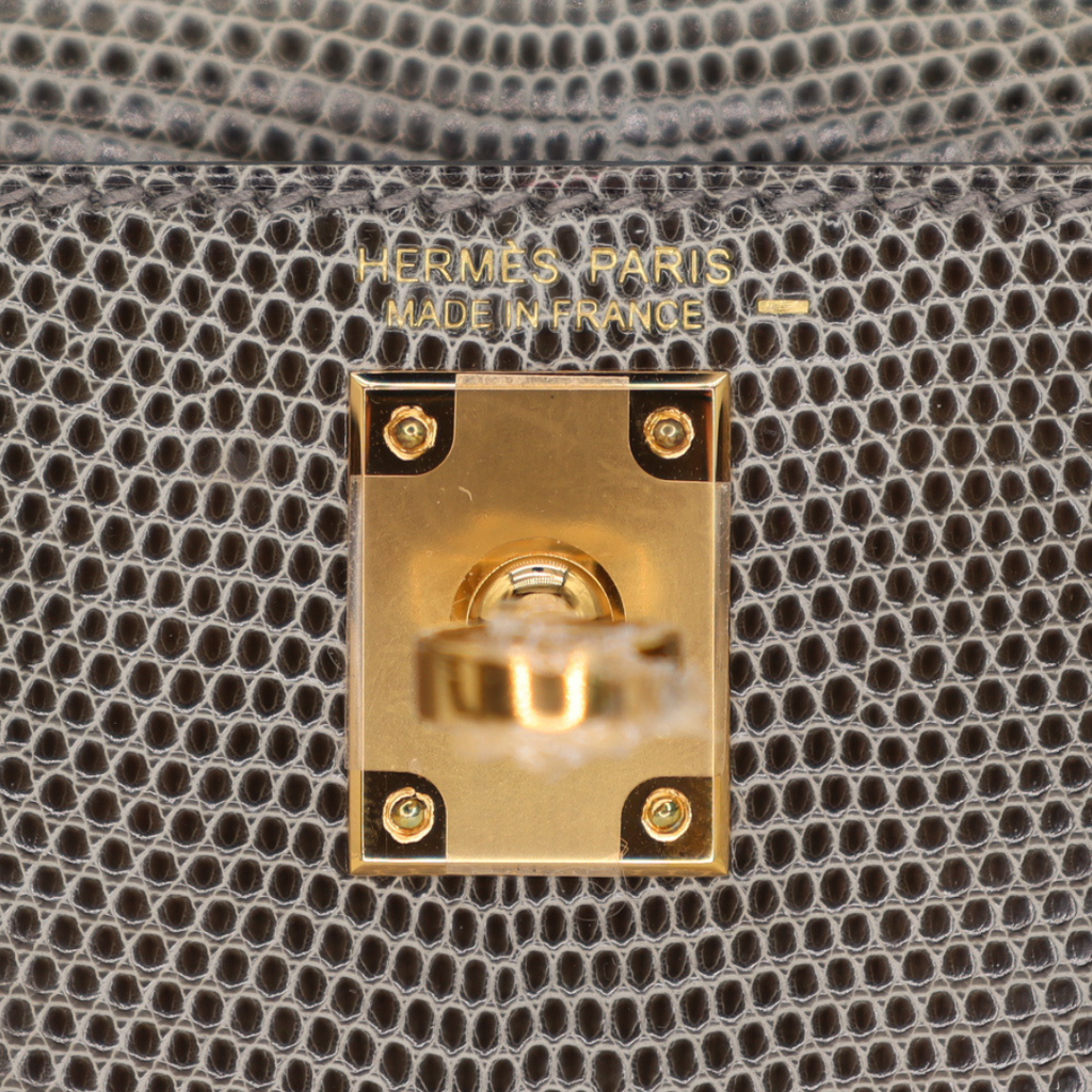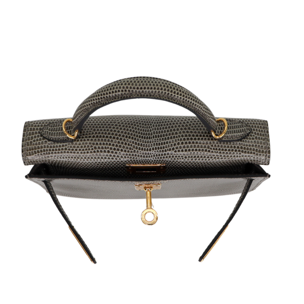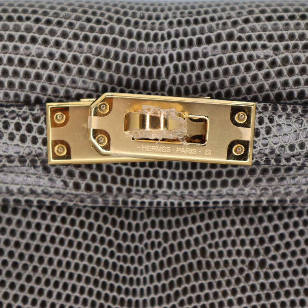 Hermès Kelly II Sellier Mini Gris Fonce Shiny Lizard Gold Hardware
