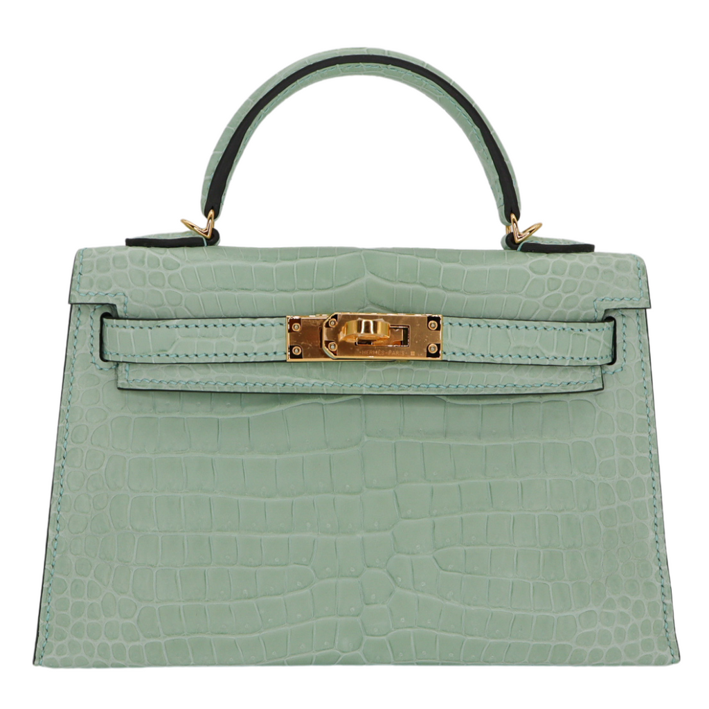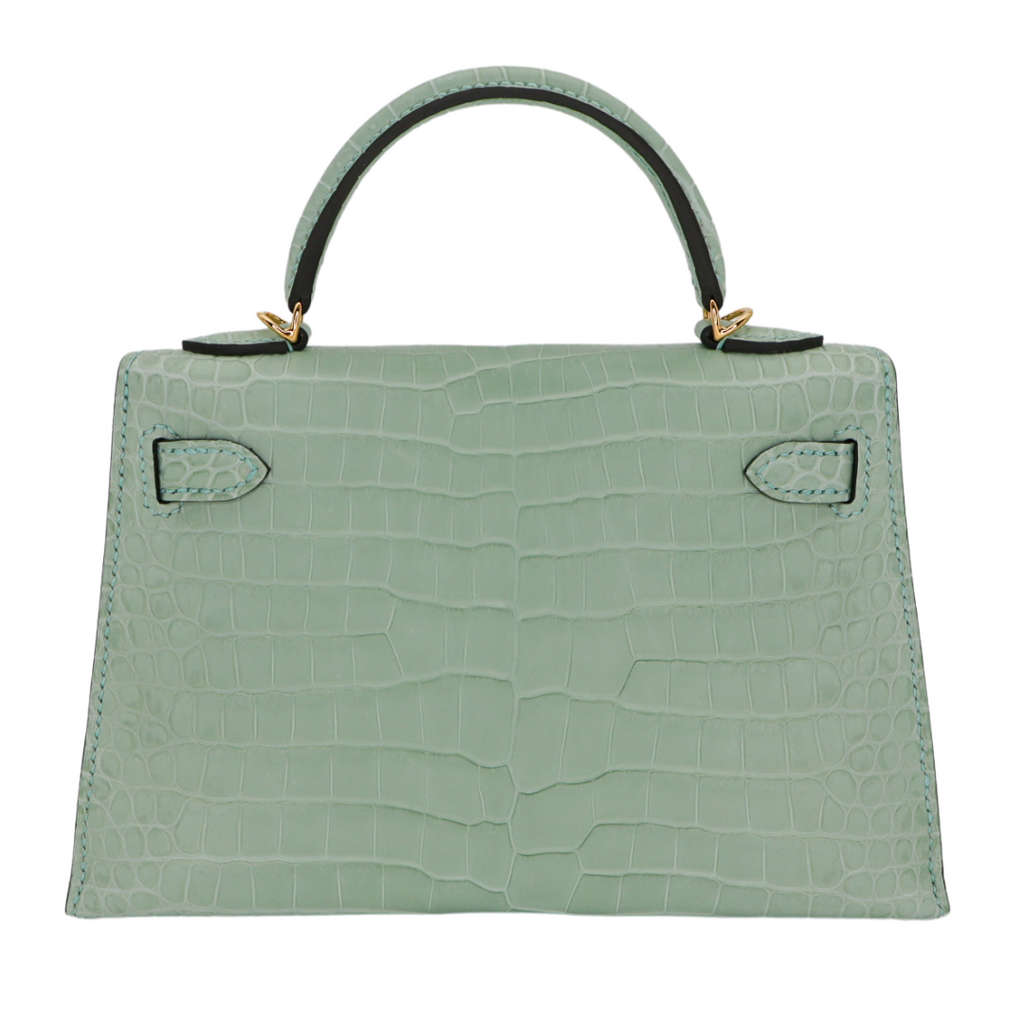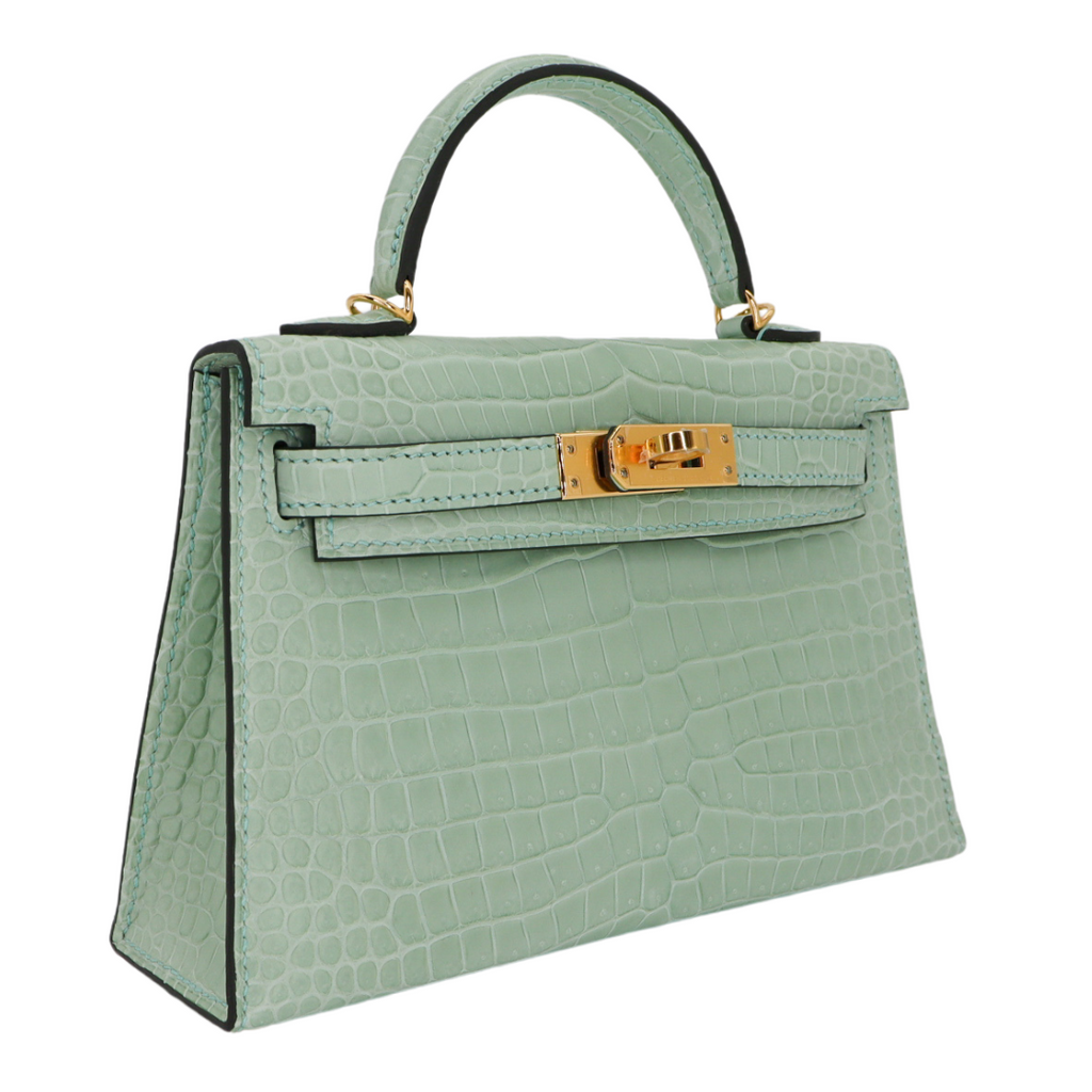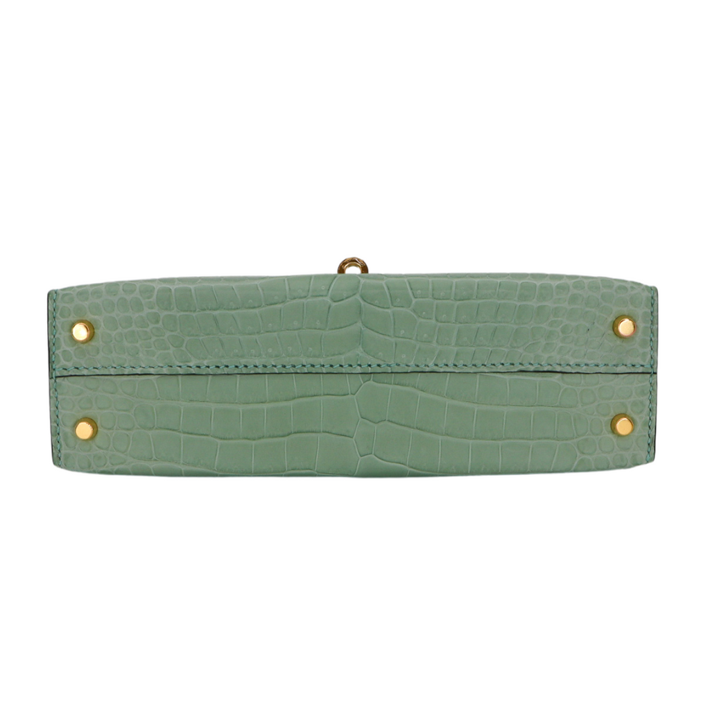 Hermès Kelly II Sellier Mini Vert D'eau Matte Porosus Crocodile Gold Hardware