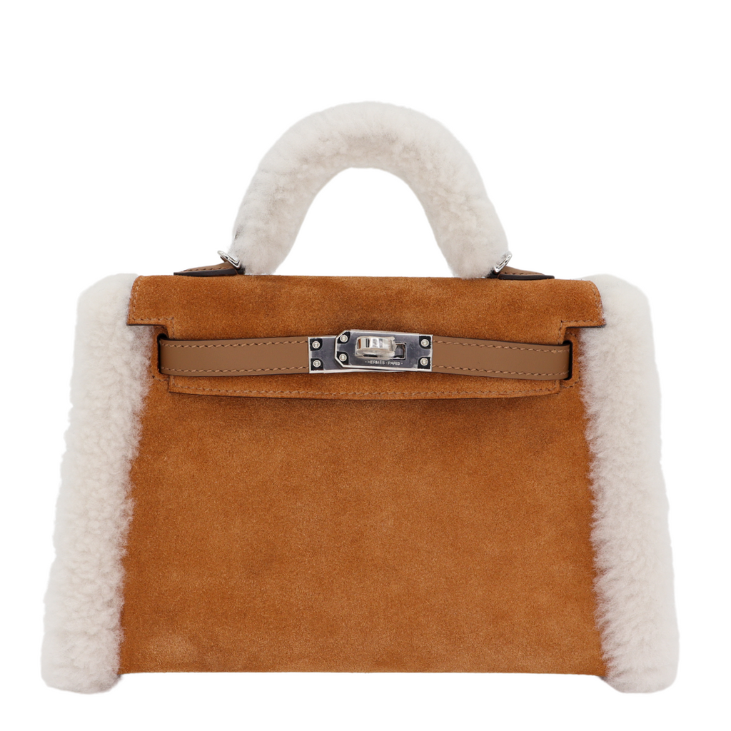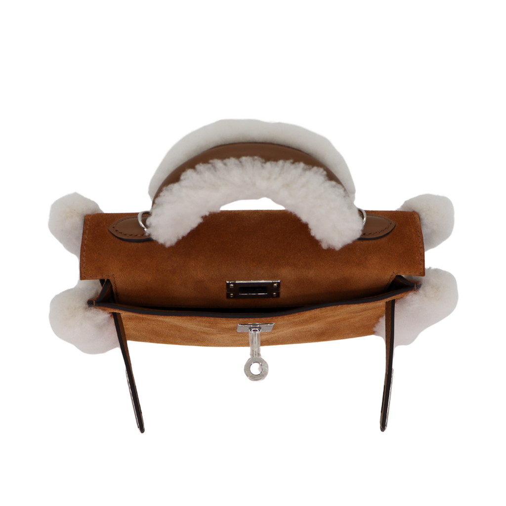 Hermès Kelly Mini Teddy Plush Shearling Chamois/Ecru/Alezan Palladium Hardware
