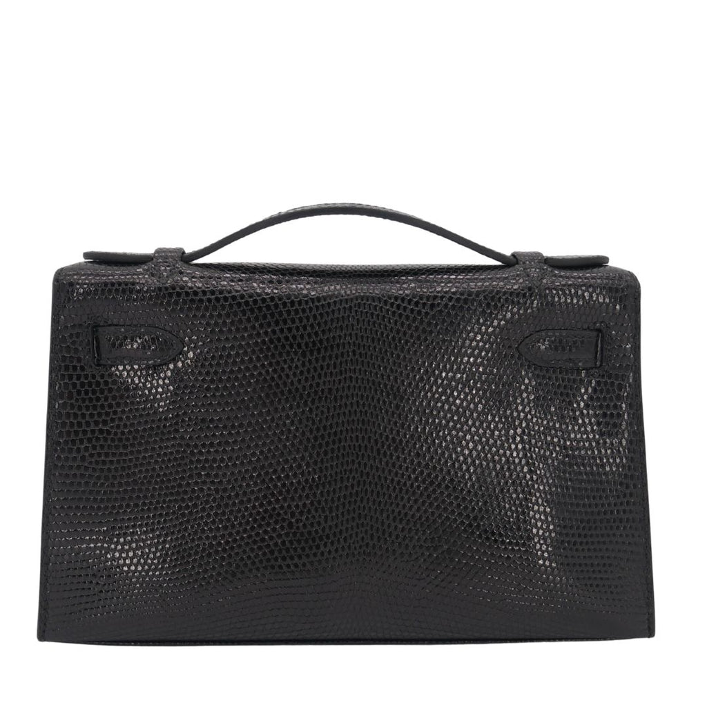 Hermès Kelly Pochette Black Shiny Lizard RGHW