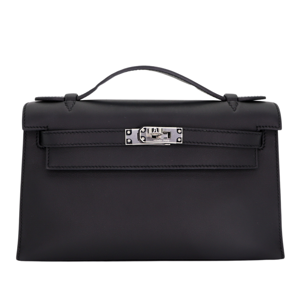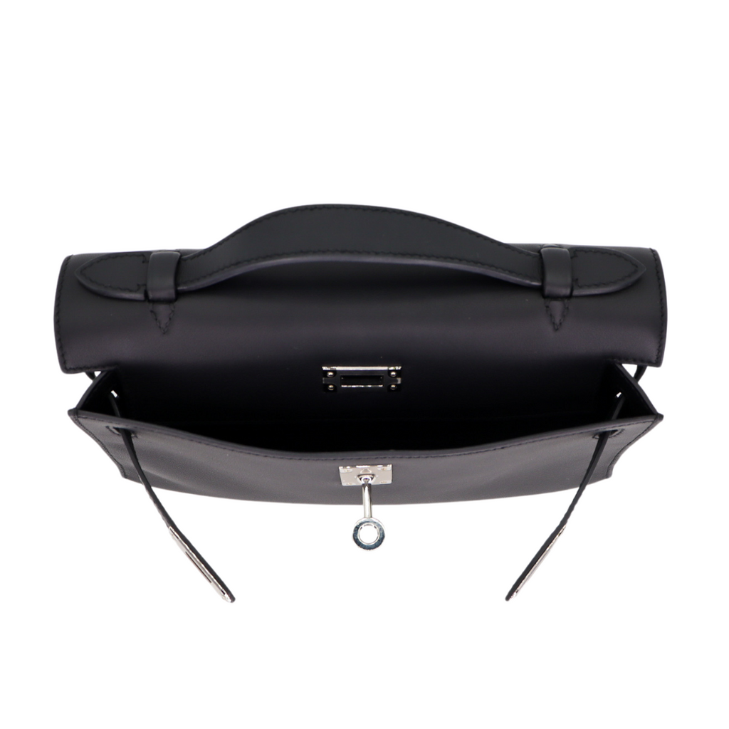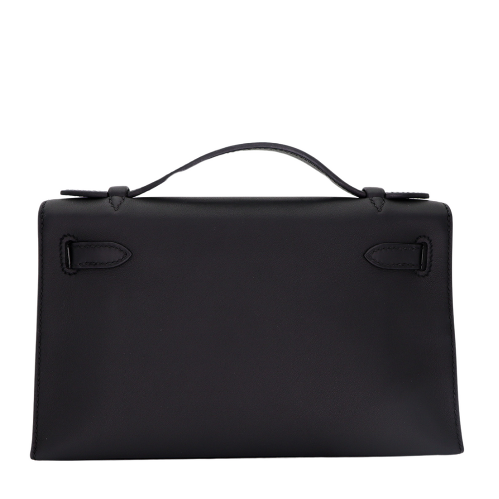 Hermès Kelly Pochette Black Swift Leather Palladium Hardware