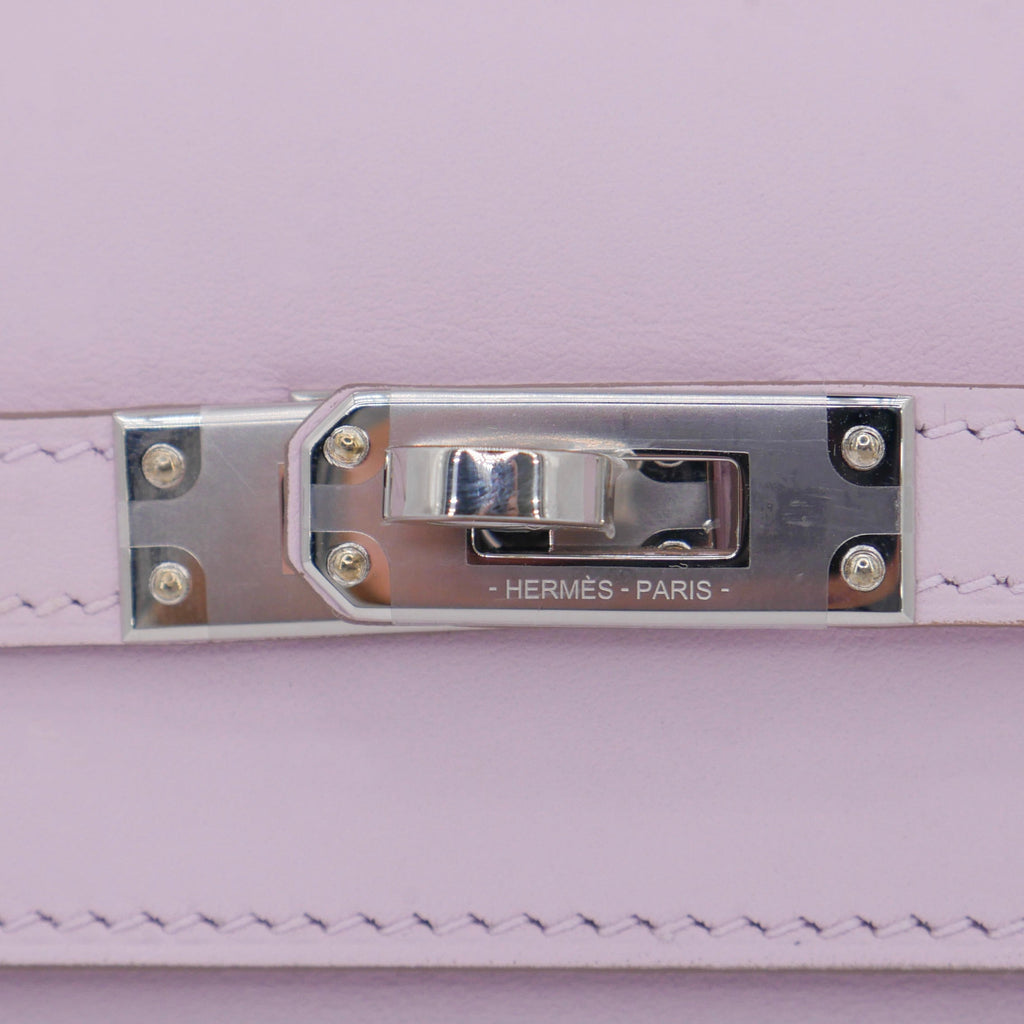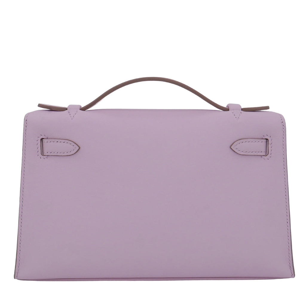 Hermès Kelly Pochette Mauve Pale Swift Leather Palladium Hardware