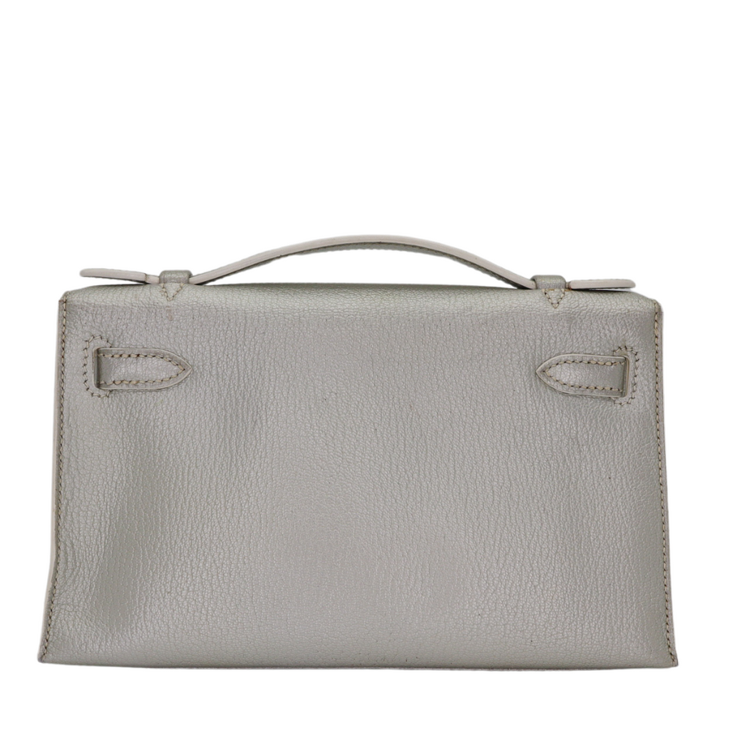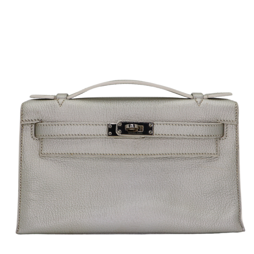Hermès Kelly Pochette Silver Metallic Swift Leather Palladium Hardware
