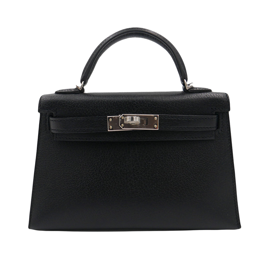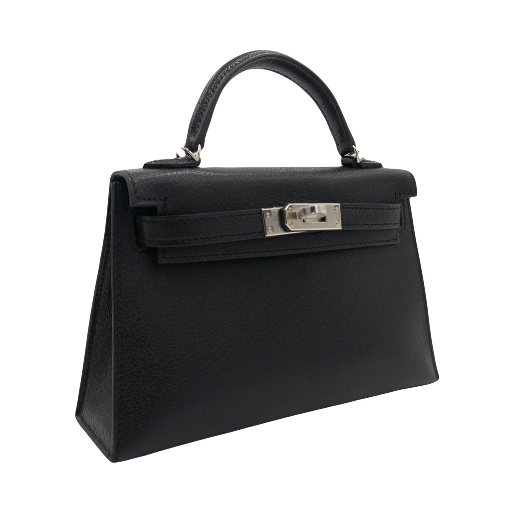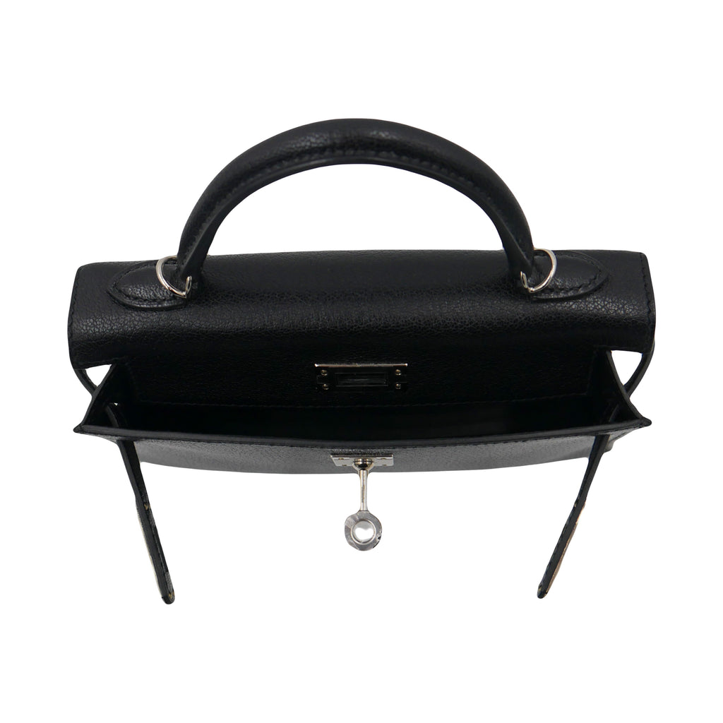 Hermès Kelly II Sellier Mini Black Chèvre Leather Palladium Hardware