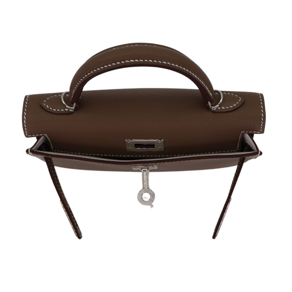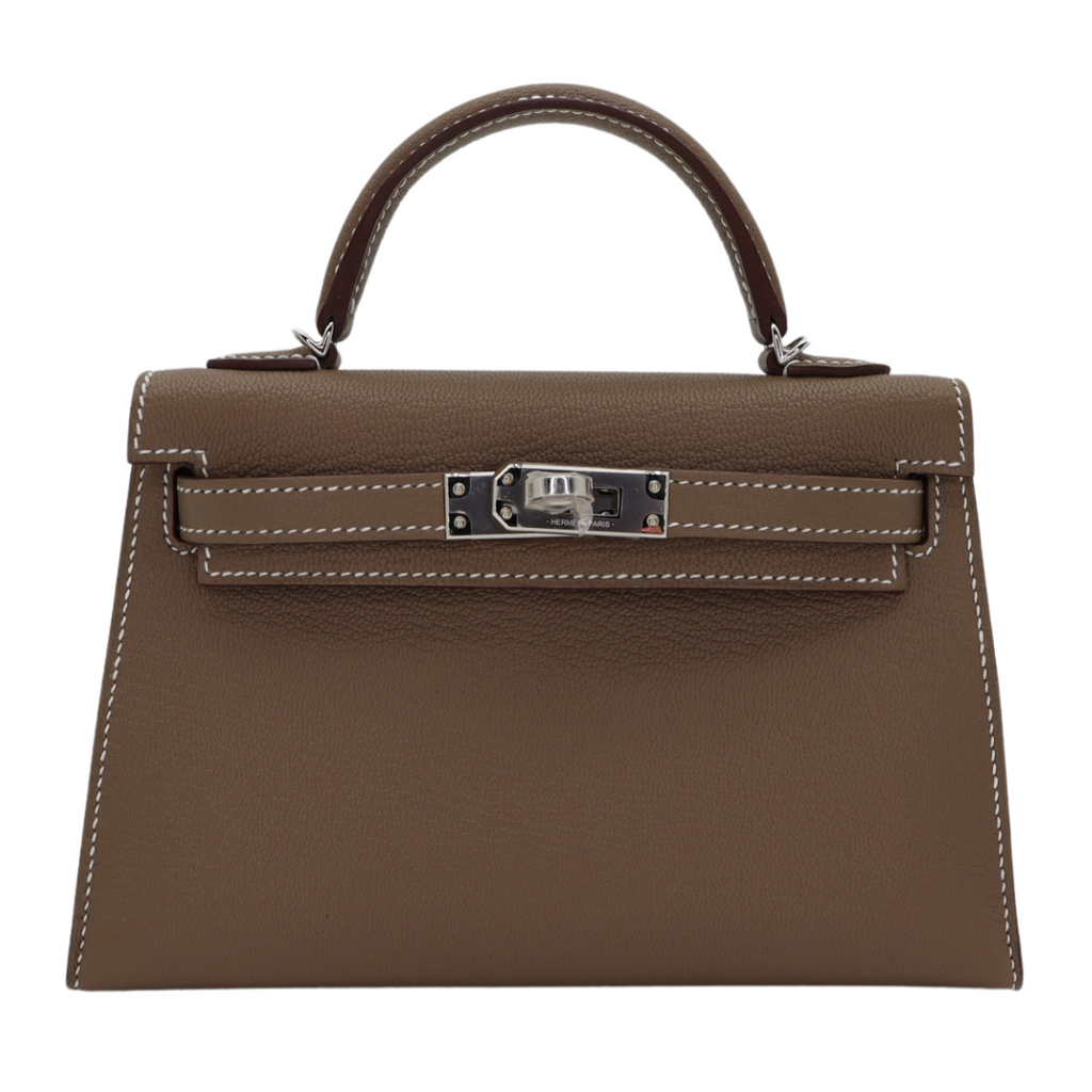 Hermès Mini Kelly II HSS Etoupe/White Chèvre Palladium Hardware